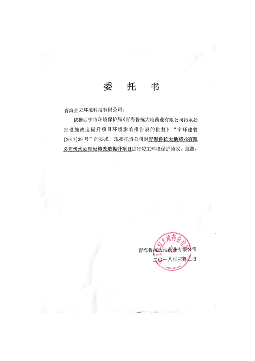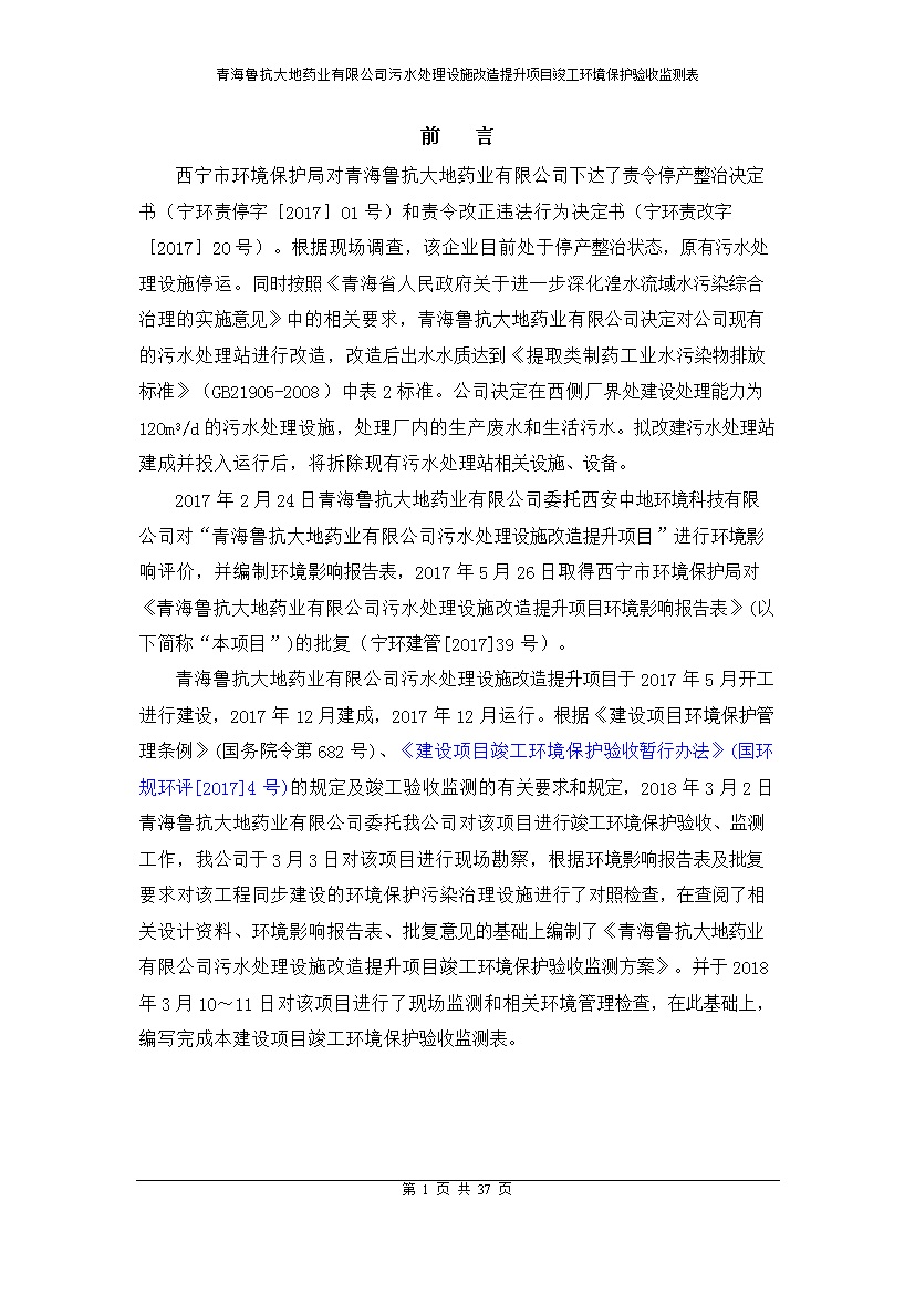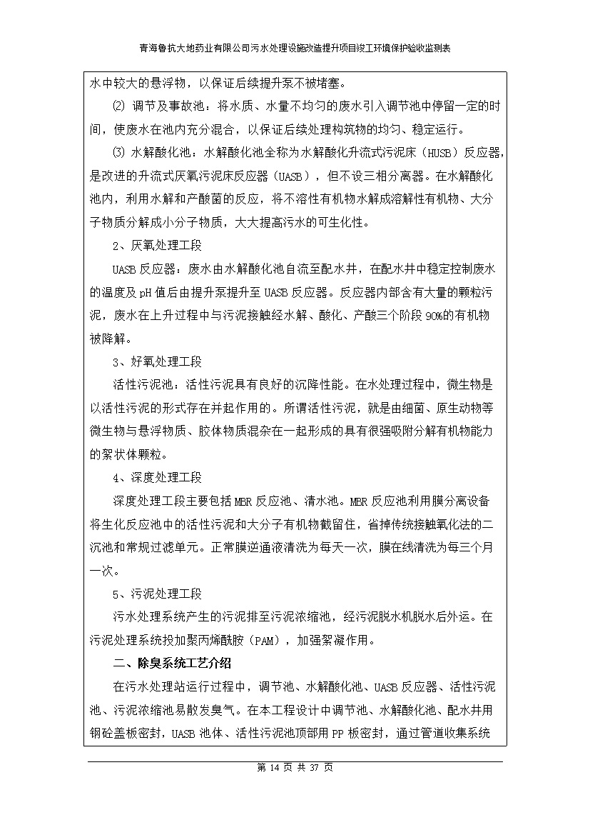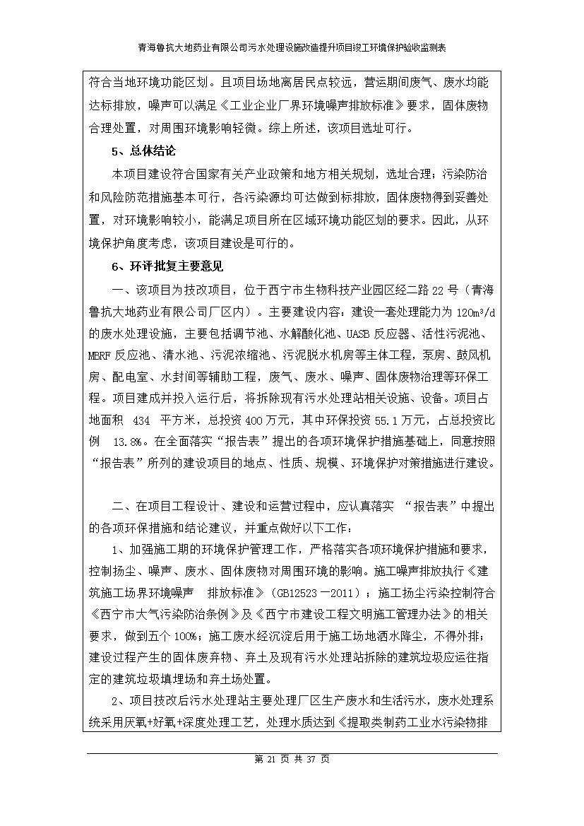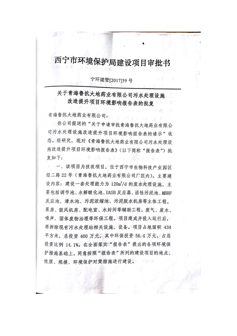 青海魯抗大地藥業有限公司污水處理設施改造提升項目