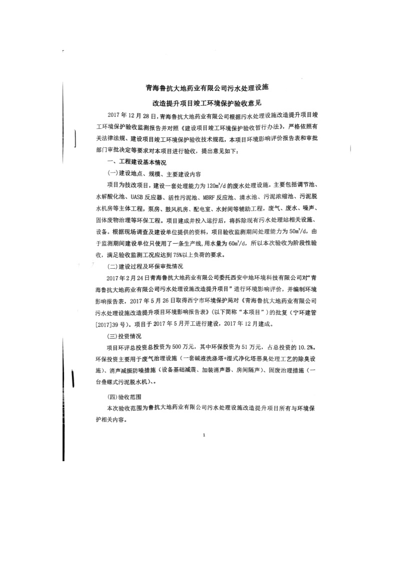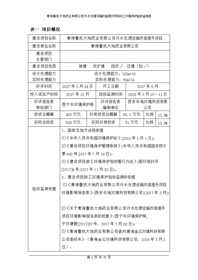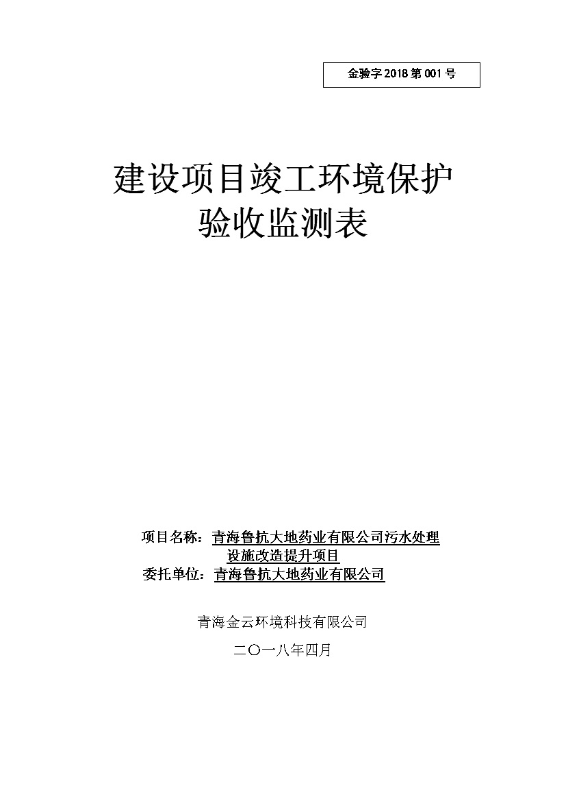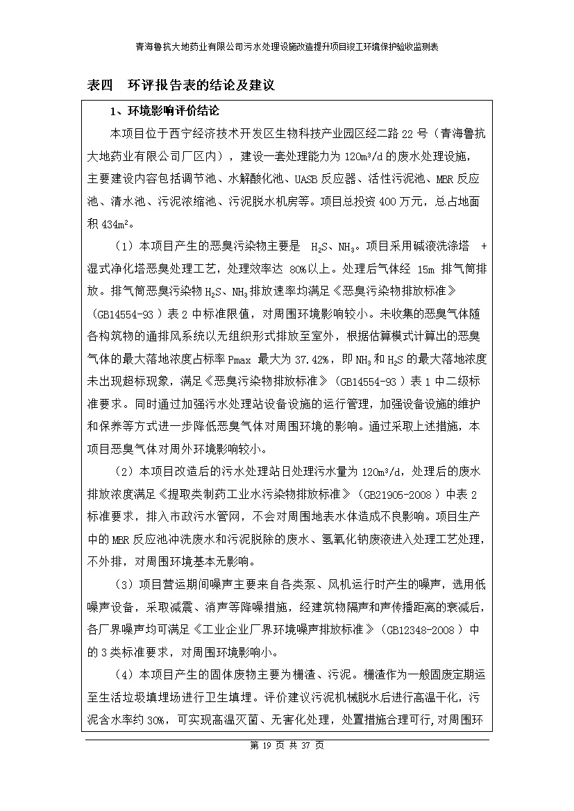 青海魯抗大地藥業有限公司污水處理設施改造提升項目