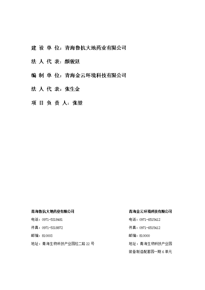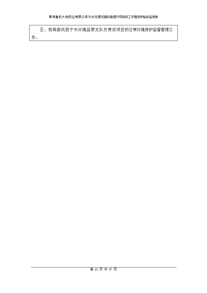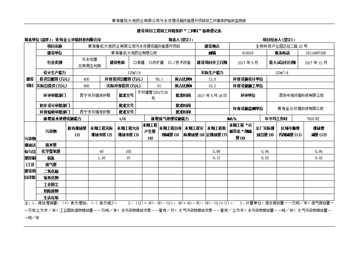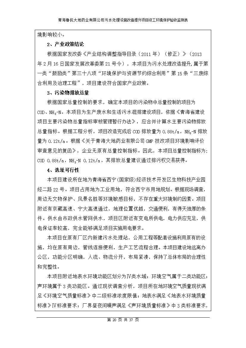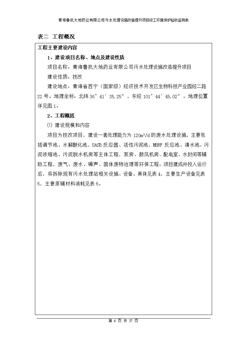 青海魯抗大地藥業有限公司污水處理設施改造提升項目